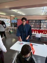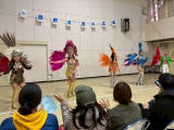 10時半から14時の間、たくさんの市民の方や市内で働く外国人の皆さんが参加されました。外国人の方が着物を着て記念撮影、そして日本の歌の披露。守山北中吹奏楽部の皆さんの踊りを交えながらの楽しい演奏。多目的ホールでは交流の広場を開催し、けん玉やこま回し・中国のお茶文化・似顔絵コーナー・折り紙コーナー・缶バッチコーナー・バルーンアートコーナーで子どもたちといっしょに楽しみました。交流センター2階では、着物体験・お茶体験・木工クラフト・ミサンガづくり・フェルト小物作りをして楽しみました。駐車場では食の広場を開催し、アンティクチョス(ペルー)・水ぎょうざ(中国)・グリーンカレー(タイ)・春まき(ベトナム)チヂミ(韓国)・ちらし寿司(日本)の各国の料理を参加者のみなさんに食べていただきました。最後は抽選会。楽しい盛り上がったひと時を過ごしました。