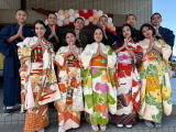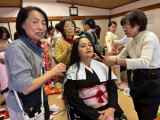 守山市で働いている外国人の方が着物を着て記念撮影。そしてこれから始まる広場の1階受付。