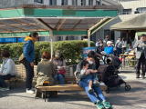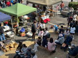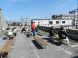 テラスで食事 にぎわい 自転車置き場で食事 にぎわい